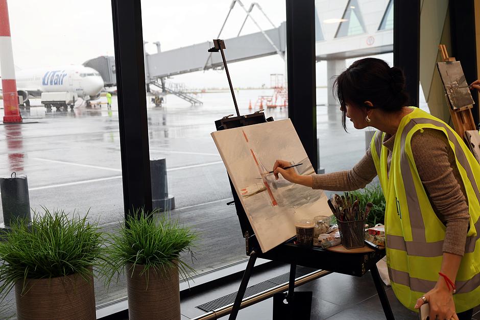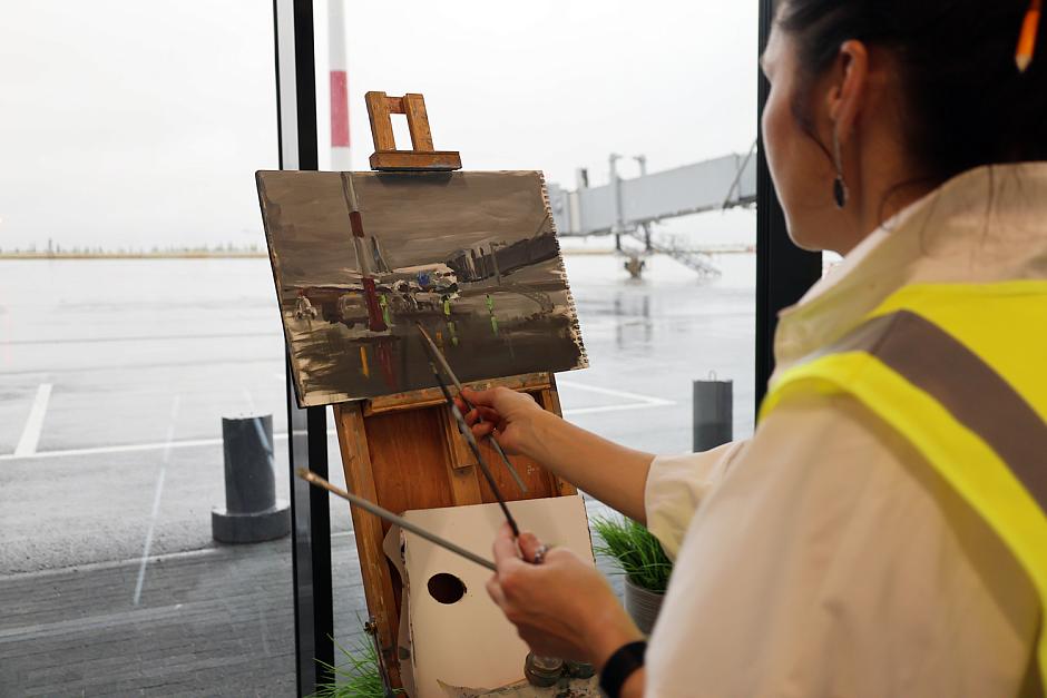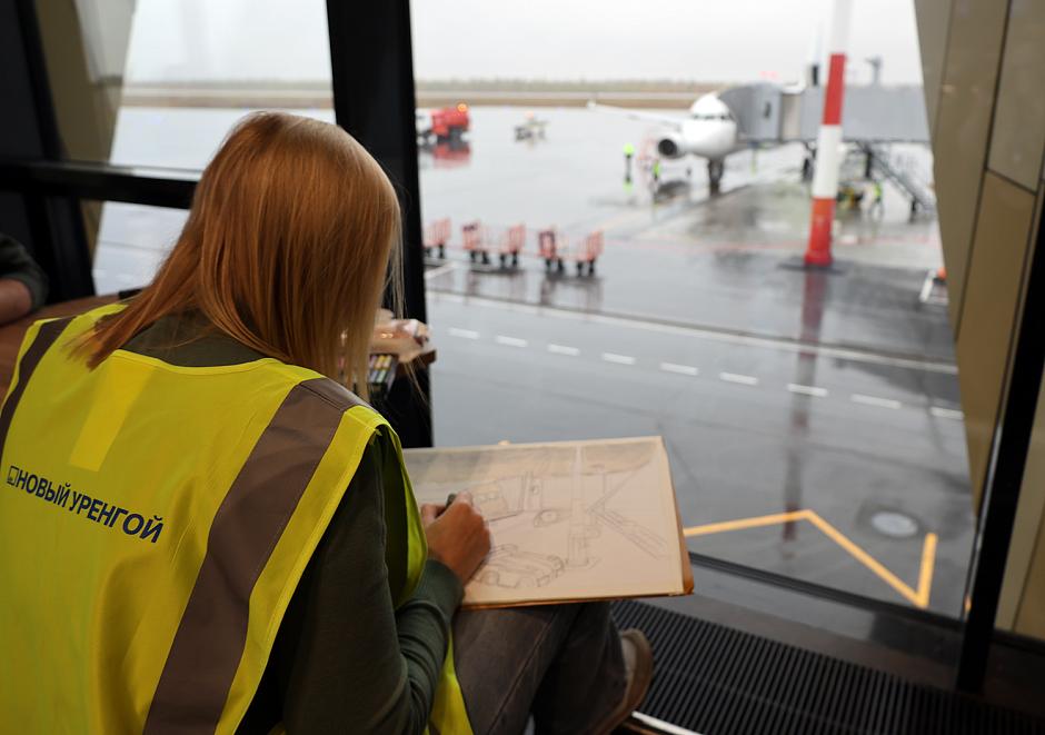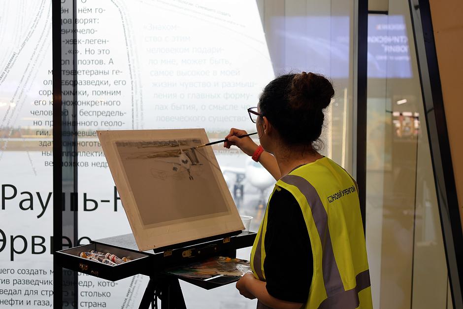 Новоуренгойские художники в течение нескольких часов писали картины непосредственно внутри воздушной гавани. Сюжетами картин стали: подготовка рейсов, движение аэродромной техники, жизнь аэровокзала.